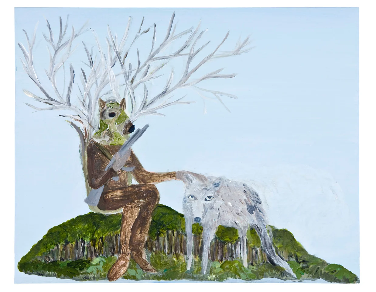 Chaitow's paintings tell odd and uncanny stories with contemporary props, such as assault rifles and cars, and although the modern trappings give these beguiling paintings an odd contemporary atmosphere, they have the insistence of a familiar yet half-remembered dream. The diptych The Agony of Waiting 1 and 2 (2010-11) represents the same scene, one in day and one in night, the slight differences in the two images prompting the viewer to try to unravel the ambiguous narrative.